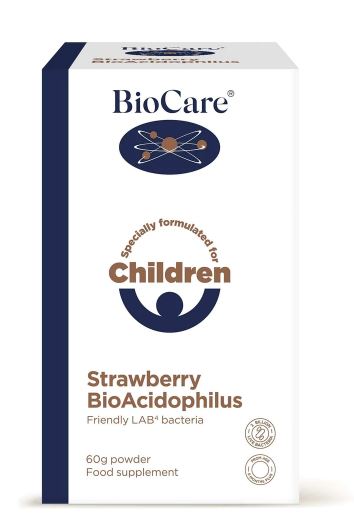 Ingredients: Fructooligosaccharides (F.O.S.), Potato Maltodextrin, Freeze Dried Strawberry Powder, Lactobacillus acidophilus, Bifidobacterium bifidum & Bifidobacterium lactis, Citric Acid.