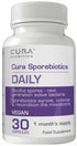 The Bacillus spore strains found in Cura Sporebiotics (Bacillus coagulans, Bacillus clausii, and Bacillus subtilis HU58®) are abundant environmental organisms that have evolved to be consumed by humans.The spores safely survive the acidic conditions of the stomach. Once in the gut, the Bacillus spores help to perform critical functions, such as helping the growth of beneficial species of bacteria, helping to create a healthy immune system, helping to produce B-group vitamins and Vitamin K2 and producing natural antioxidants and natural antibiotics.