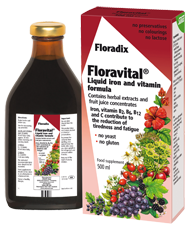 Floravital liquid contains iron from ferrous gluconate which is a particularly absorbable form.