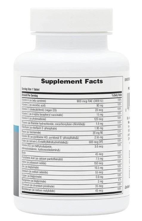 - 100% or more Daily Value of the vitamins a man’s body requires
